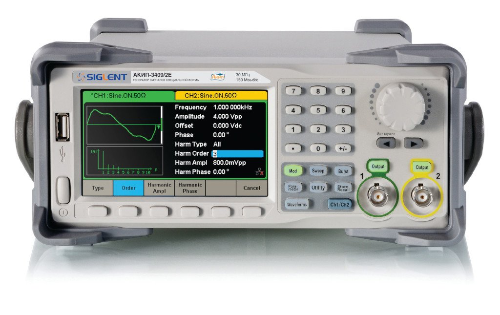 - Диапазон частот (синус): 1 мкГц – 30 МГц;