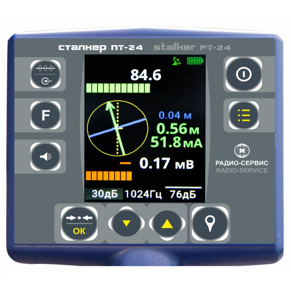 Приемник ПТ-24, входящий в состав комплекса, обладает широким диапазоном активных и пассивных частот, что позволяет эффективно работать с различными типами подземных коммуникаций и адаптироваться к условиям местности. Активные частоты включают значения от 273 Гц до 32 768 Гц, а пассивные охватывают диапазон от 50 Гц до 1450 Гц, что обеспечивает гибкость и точность при трассопоиске. Также приемник поддерживает частоты для взаимодействия с генераторами других производителей, что делает устройство универсальным и совместимым с различными системами. Полоса пропускания в режиме «РАДИО» варьируется от 10 кГц до 36 кГц, что способствует качественной фильтрации сигнала и минимизации помех.
