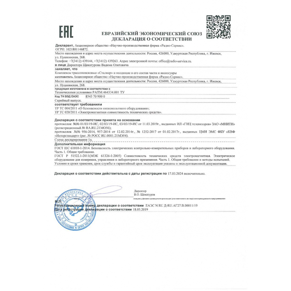1. | Сталкер ПТ-14 - приемник | Приемник предназначен для определения планового положения и глубины залегания коммуникаций, мест повреждения изоляции трубопроводов и кабелей, обследования участков местности перед проведением земляных работ. | 1 |