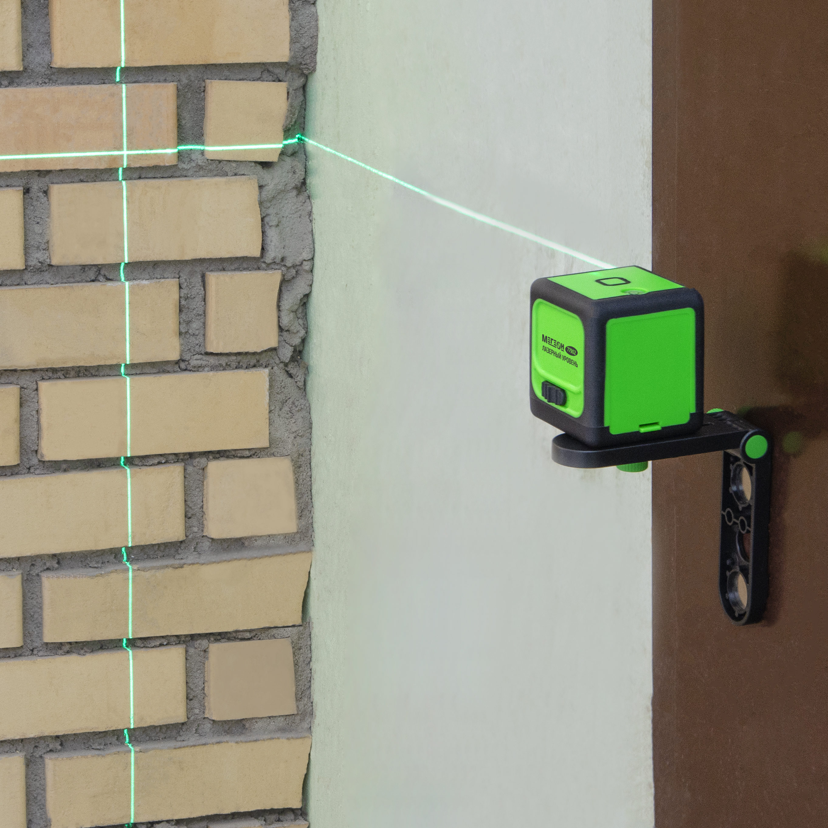 МЕГЕОН 77902 компактный помощник в любом деле, будет полезен как в быту, так и на стройке. Поможет идеально ровно уложить плитку, паркет, ламинат. Повесить картину, карниз, полку, зеркало и шкафчики в ванной. Проштробить стену, собрать кухонный гарнитур, расположить телевизор. Прибор проецирует два ярких зелёных, пересекающихся под прямым углом луча, на расстояние до 30 метров. Встроенный пузырьковый уровень позволит максимально правильно выставить устройство по горизонту и использовать его в качестве нивелира, а система самовыравнивания позволяет сгладить погрешность в ±3 градуса. Защищённый обрезиненный корпус с защитой IP54 значительно повышает надёжность и бережёт от поломок при падении и ударах. Можно установить на штатив или магнитный кронштейн из комплекта. Источником питания служат повсеместно распространённые батарейки формата ААА. Включение и выключение прибора, а так же блокировка маятника механизма самовыравнивания производится одной клавишей.