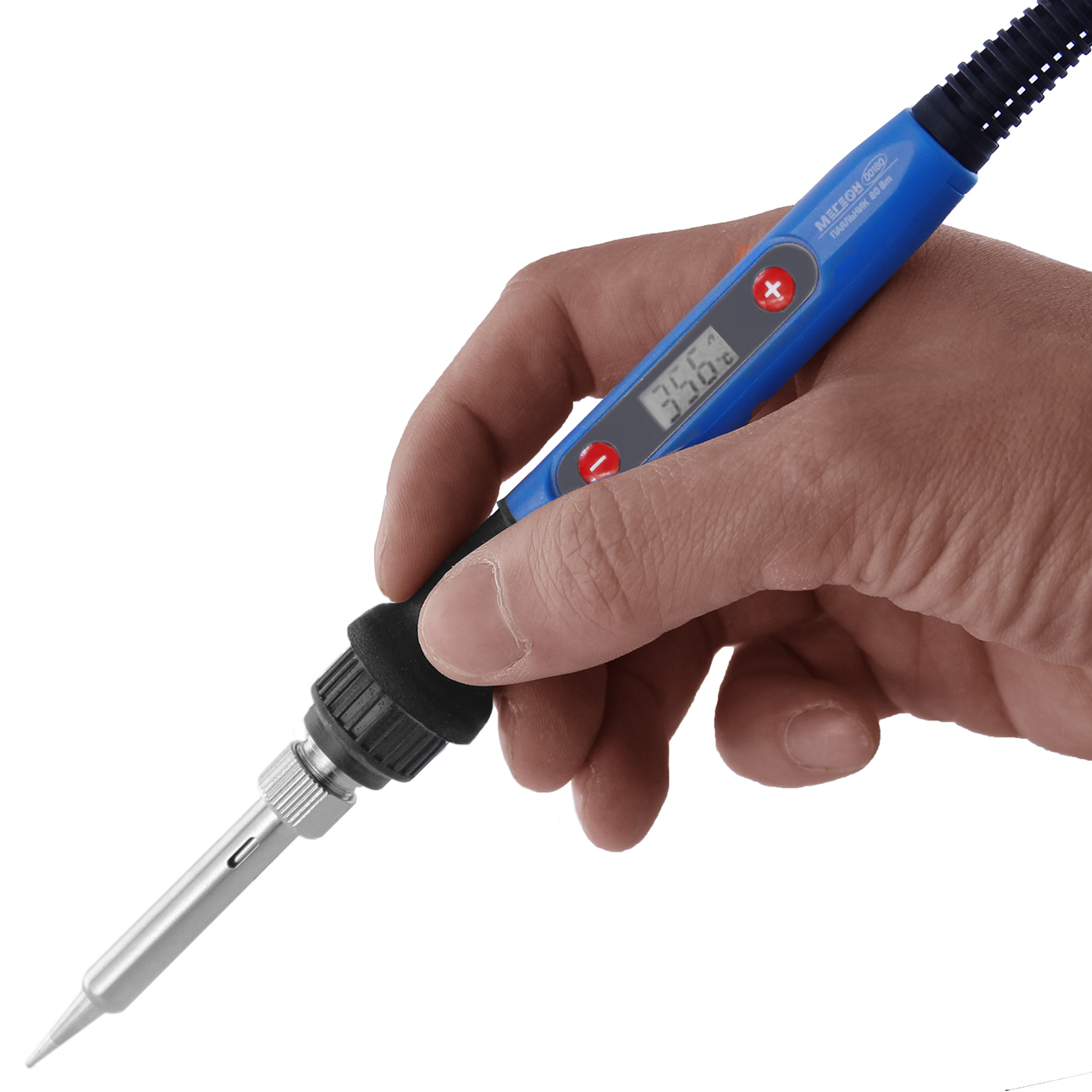 МЕГЕОН 00180 — это миниатюрный паяльник с цифровым управлением температурой и контролем непосредственно на рукоятке. Непревзойдённый функционал в сочетании с маленьким весом и размерами. Гибкая система настроек обеспечивает максимальное удобство при работе с припоями и канифолью. Органы управления расположены на корпусе, а все данные выводятся на OLED-дисплей. Инструмент может укомплектовываться девятнадцатью видами сменных наконечников, давая возможность выполнять качественную пайку электрокомпонентов. В качестве тена был применён керамический нагревательный элемент с высоким ресурсом. Ручка имеет резиновое покрытие и гарду, что в свою очередь исключает соскальзывание пальцев оператора на горячие части конструкции.Таким образом наш паяльник удовлетворит требования любителей и профессионалов. Срок службы составляет 3 года.