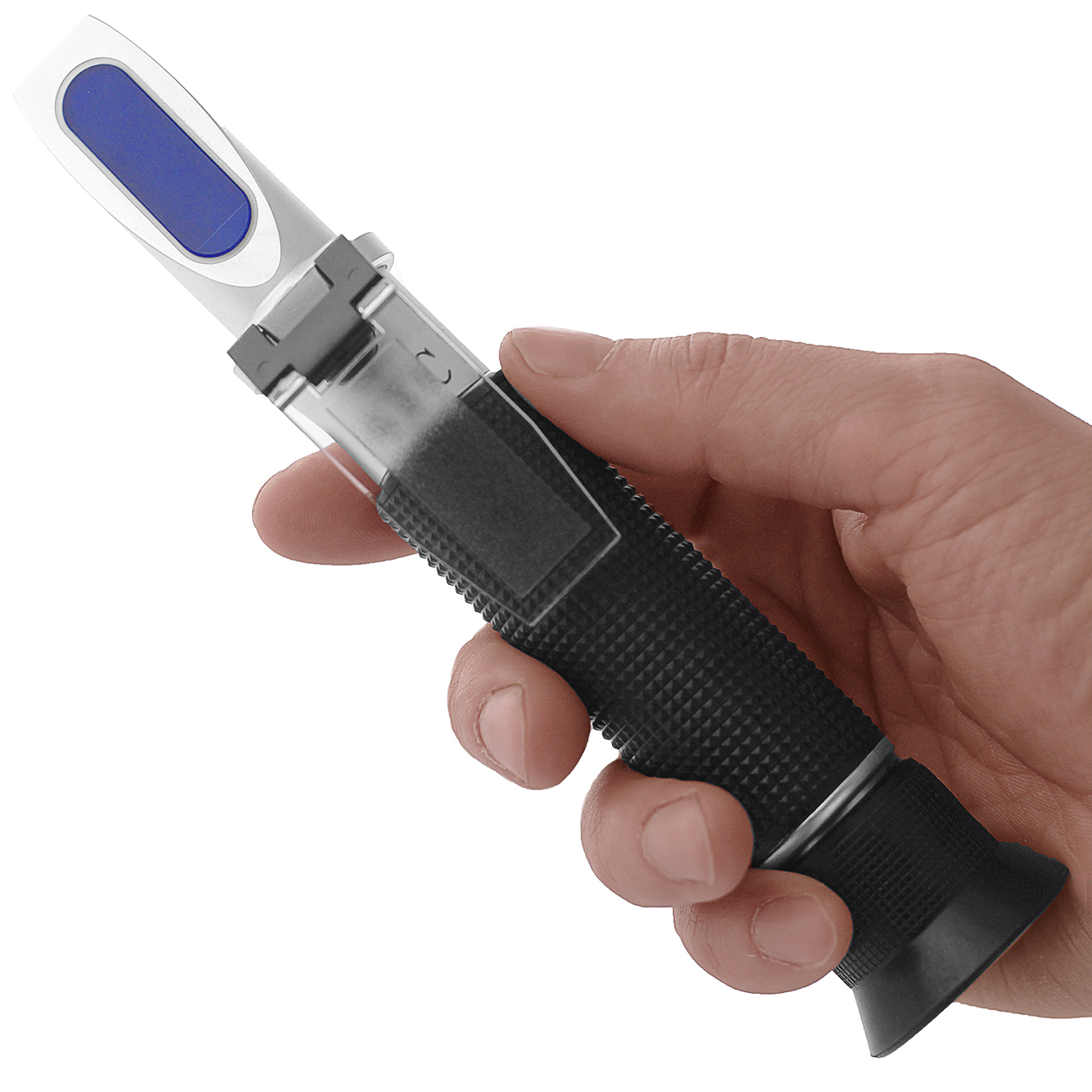 МЕГЕОН 72009 относится к оптическим измерительным приборам — рефрактометрам, которые предназначены для определения коэффициента преломления исследуемого вещества и проецировании отраженного света на специально отградуированный экран. Характеристики жидкости (концентрация, плотность и т.д.), устанавливаемые рефрактометром, определяют вид шкалы, нанесенной на экран. Для повышения точности предусмотрена система автоматической температурной коррекции (ATC), которая имеет широкий температурный диапазон работы. Для исследования достаточно нанести две- три капли на призму с градуировкой, закрыть прижимное стекло и настроить фокусировку. Не требуется источник питания, что даёт возможность производить измерения при низких температурах. Эргономичный корпус из алюминиевого сплава и простота эксплуатации максимально увеличивают срок службы изделия.