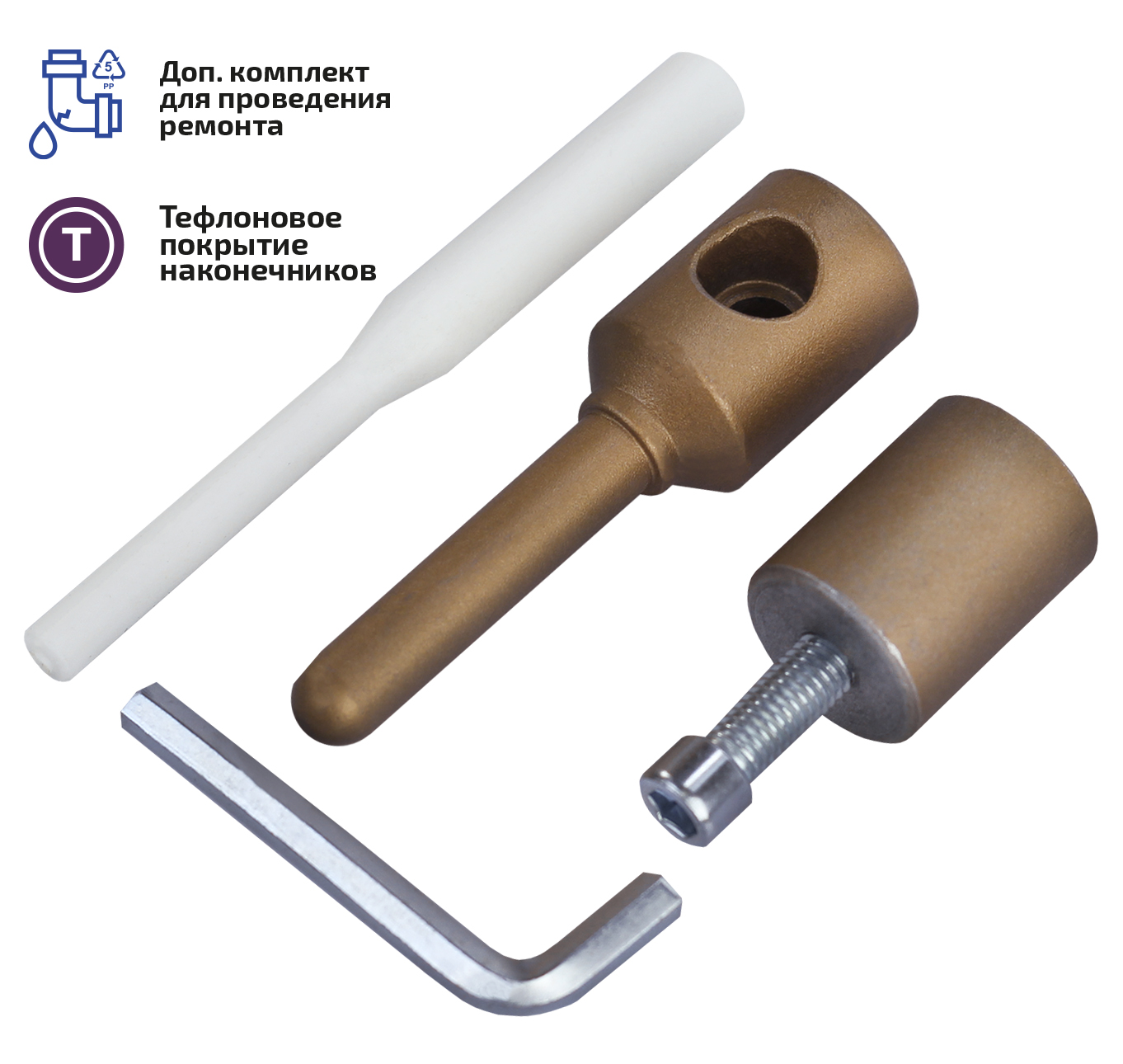 Комплект оснастки МЕГЕОН 98008 предназначен для ремонта полипропиленовых труб путём их сварки. Насадки устанавливаются на нагреваемую поверхность сварочного аппарата. Затем жалом одного из наконечников подготавливается отверстие в том месте, где образовался свищ или иное сквозное повреждение, влияющее на герметичность системы. Параллельно с этим ответной частью с углублением осуществляется подготовка полипропиленового прутка. После завершения подготовки отверстия в стенке трубки, быстро введите в него оплавленный край ПП- стержня. Смочите пальцы рук и кратковременными нажатиями уплотните края образовавшегося шва на стыке. Труборезом или ножовкой по металлу обрежьте оставшуюся часть с целью дальнейшего применения. Удалите заусенцы и неровности путём оплавления краёв среза. При необходимости повторной процедуры, осуществите действия описанные выше.