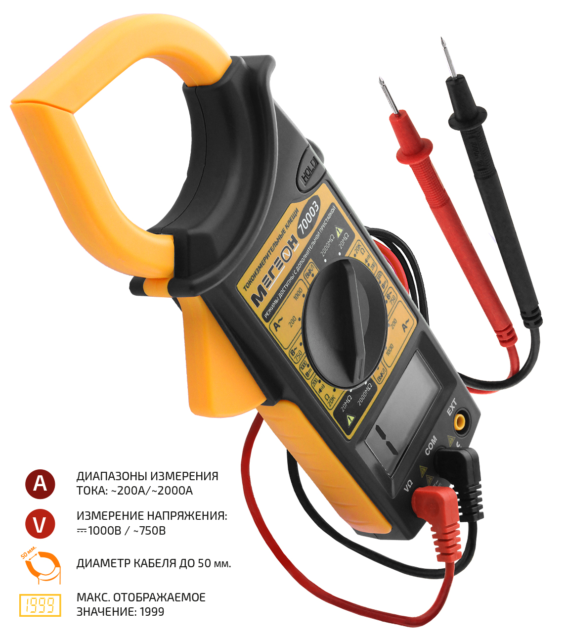 200А … 1000 А | ±(3 %+5 е.м.р.) | 1 А |