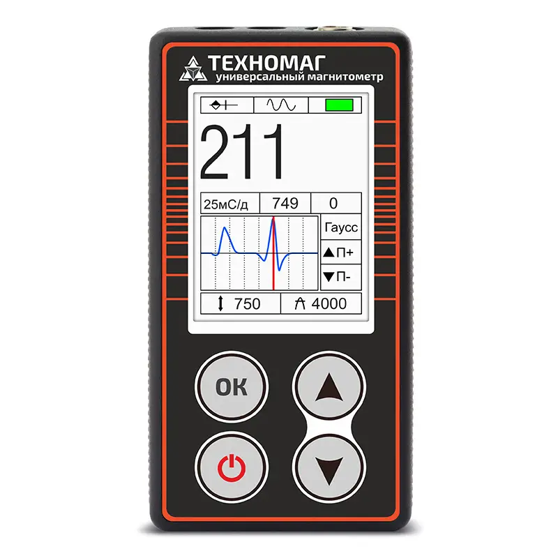 Универсальный магнитометр «Техномаг» предназначен для измерения индукции/напряженности постоянного магнитного поля и ее градиента, пиковых и среднеквадратичных значений индукции/напряженности переменного магнитного поля, пиковых значений индукции/напряженности однократных импульсов магнитного поля. Он позволяет решить широкий круг измерительных задач. Прибор применяется для оценки остаточной намагниченности, контроля намагничивания при использовании переменного, постоянного или выпрямленного тока промышленной частоты, выявления локальных магнитных полюсов, определения амплитуды однократных намагничивающих импульсов поля, измерения напряженности поля в А/м или А/см, градиента напряженности в А/см2, а также индукции в мТл или мкТл.